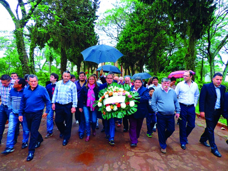 Este sábado en la Cruz Mayor del cementerio público “La Piedad” de esta capital provincial, se realizó un sentido homenaje a los trabajadores del comercio misionero ya fallecidos, como también a los creadores del Centro de Empleados mercantiles que hoy lidera el reconocido dirigente Benigno Gómez.Con la colocación de una ofrenda floral, un minuto de silencio y algunas palabras alusivas posteriores, la comisión directiva del gremio mercantil en Posadas, rindió su ya habitual homenaje al recordarse el día del empleado de comercio. A pesar del mal tiempo, se hicieron presentes otros integrantes del CEC Posadas, de otros sindicatos adheridos a la CGT Andrés Guacurarí que lidera Gómez; y delegados en diferentes comercios de la ciudad y la región.Cabe recordar que, por una fuerte gestión desarrollada por el gremio mercantil, mañana lunes 28 no habrá actividad en los comercios más importantes de la región, brindando así la posibilidad a los trabajadores de festejar su día en familia.