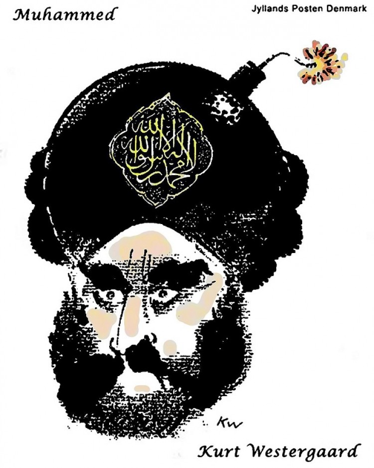 El diario danés Jyllands-Posten provocó un escándalo en el mundo islámico cuando publicó doce imágenes satíricas del profeta Mahoma, hecho que está prohibido por esa religión. En la nota del semanario realizaron una crítica a la autocensura y la libertad de expresión en los países donde rigen los preceptos islámicos de manera más rígida y mencionaron además que ningún artista se animaba a ilustrar el libro infantil sobre el profeta, del autor danés Kare Bluitgen, si no era con la condición de que no se difundiera sus nombres. Había temor por represalias de los fanáticos extremistas. Lo que siguió a la publicación fue una serie de amenazas al semanario y los dibujantes se vieron en lo obligación de esconderse. En solidaridad con ellos, otros periódicos y revistas europeas replicaron los dibujos en sus ediciones. Las protestas se desataron por todo el mundo árabe y hubo ataques a embajadas danesas en diversos países de Medio Oriente. El periódico francés Charlie Hebdo -tristemente célebre a comienzos de este año tras el ataque terrorista contra sus instalaciones- publicó más caricaturas y hasta sufrió un juicio en 2007 por “Injurias de base religiosa”, pero sus editores fueron absueltos.