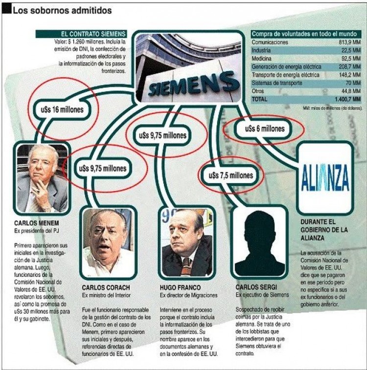 Un exejecutivo del gigante alemán Siemens se declaró este miércoles en Estados Unidos culpable de participar en un esquema de sobornos para ganar un contrato de 1.000 millones de dólares con el Gobierno argentino.   Andrés Truppel, un exejecutivo del departamento financiero de Siemens en Argentina, ciudadano argentino y alemán, admitió que había conspirado para pagar 100 millones de dólares en sobornos a altos funcionarios argentinos para obtener un contrato para producir documentos nacionales de identidad, dijo el fiscal federal de Manhattan Preet Bharara.   De los nueve exejecutivos y empleados del gigante industrial germano que están acusados ante la Justicia estadounidense por el pago de coimas a funcionarios del Gobierno argentino en diciembre de 2011, Truppel es el primero que se declara culpable del cargo de conspirar para violar la Ley contra las Prácticas de Corrupción en el Extranjero, ante la jueza de distrito Denise Cote,  dijo Bharara.  "Andrés Truppel admitió que jugó un papel significativo en la conspiración para pagar sobornos que se extendió durante más de una década", agregó.   "Truppel y sus cómplices entregaron cerca de 100 millones de dólares en coimas a funcionarios, incluidos siete millones girados a una cuenta bancaria en Nueva York, y presentaron una fraudulenta demanda de arbitraje en Estados Unidos, con una declaración falsa de Truppel como testigo", señaló Bharara.   El Gobierno argentino concedió la fabricación de documentos de  identidad a Siemens en 1998 y en 2008 la firma aceptó pagar 1.600 millones de dólares a las  autoridades estadounidenses y alemanas por las acusaciones de prácticas corruptas en relación con el caso, y colaboró en la investigación sobre los acusados.Fuente: Agencia de Noticias AFP/NA