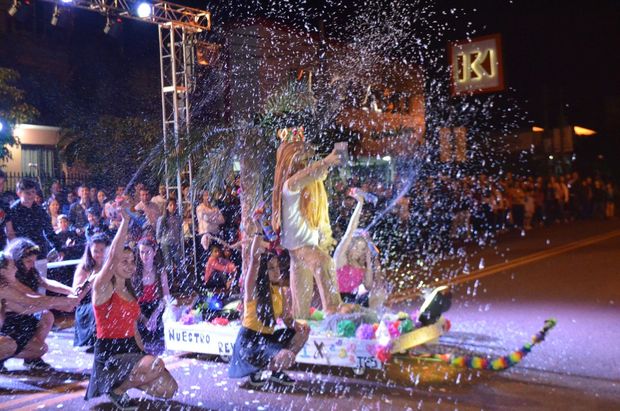 Camila Rodríguez, Reina de los Estudiantes 2015, junto Maira Pietrouski, del colegio IES, y Karen Parra, de la EPET, primera y segunda princesa respectivamente, también participaron de la fiesta.La noche contó además con presentación de bandas locales.