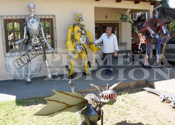 Read moreLos personajes menos pensados, realizados con fierros en desuso, decoran el interior de la vivienda y el patio de la ...