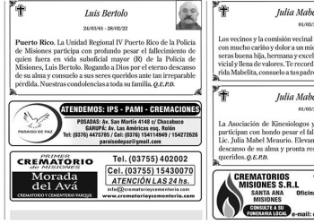 Fúnebres del Miércoles 2 de Marzo de 2022