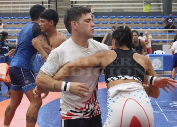 PROMETEN. Mauri Lovera y el precalentamiento con Azul Sánchez. Atrás, Delgadillo. Misiones, otra vez protagonista. Finalizó ayer en Posadas ...